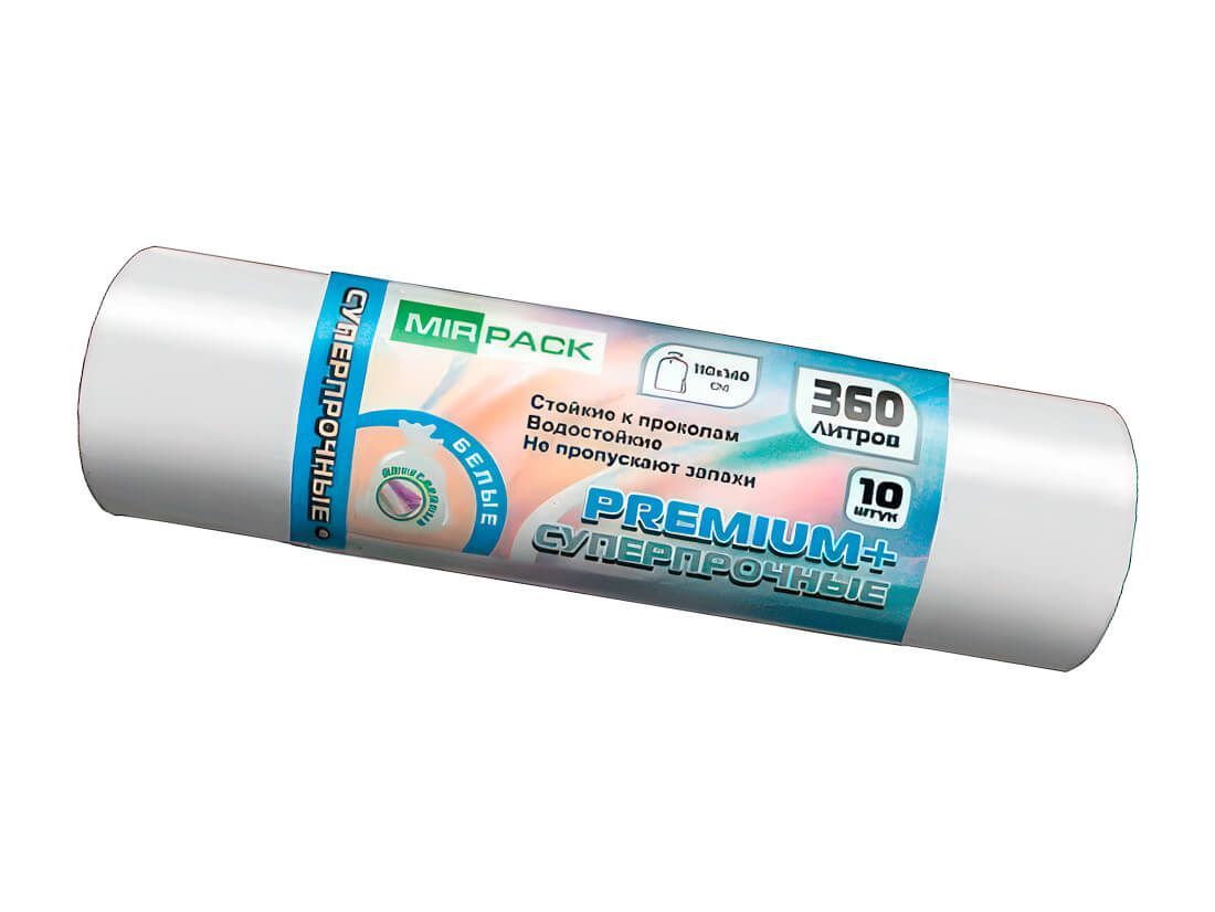 Мешки для мусора 360 л, белые, в рулоне 10 шт., ПВД 65 мкм, 1400х1000 мм, PREMIUM+, 3601015302