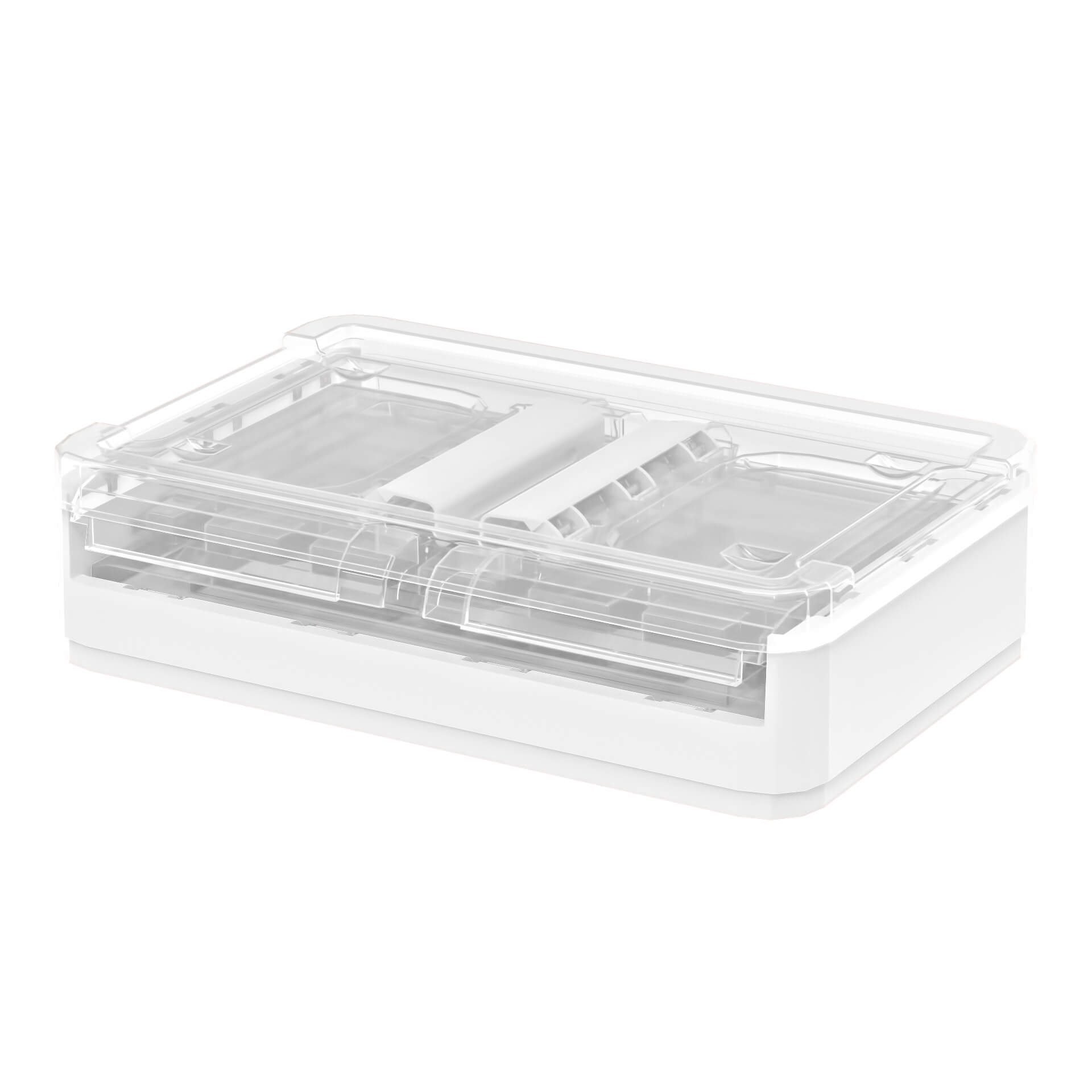 Складной пластиковый ящик 360х235х230 мм, прозрачный с белым дном и колесиками – удобство в каждом движении