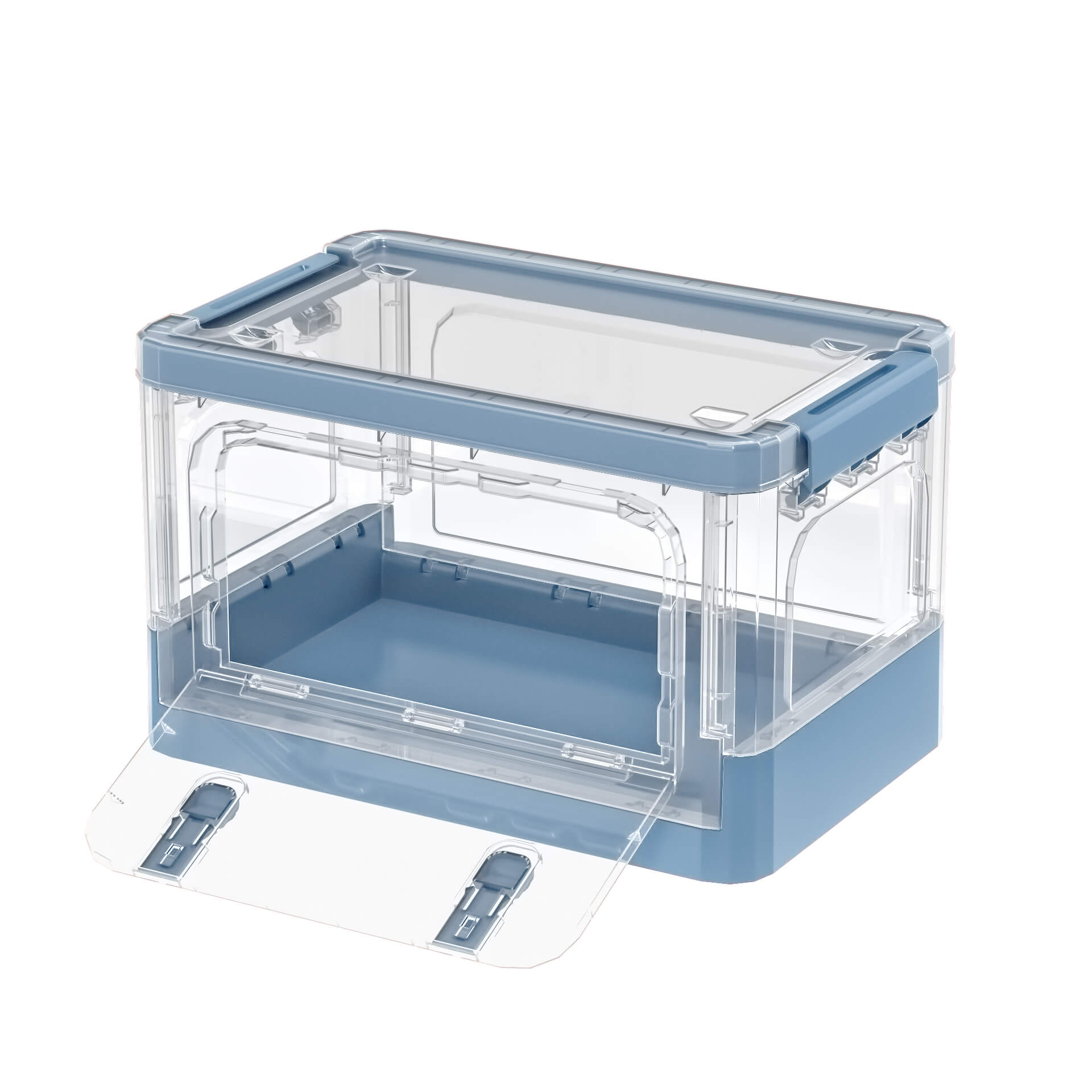 Складной пластиковый ящик 360х235х230 мм, прозрачный с синим дном, колесиками и дверцей – удобство и функциональность в одном решении