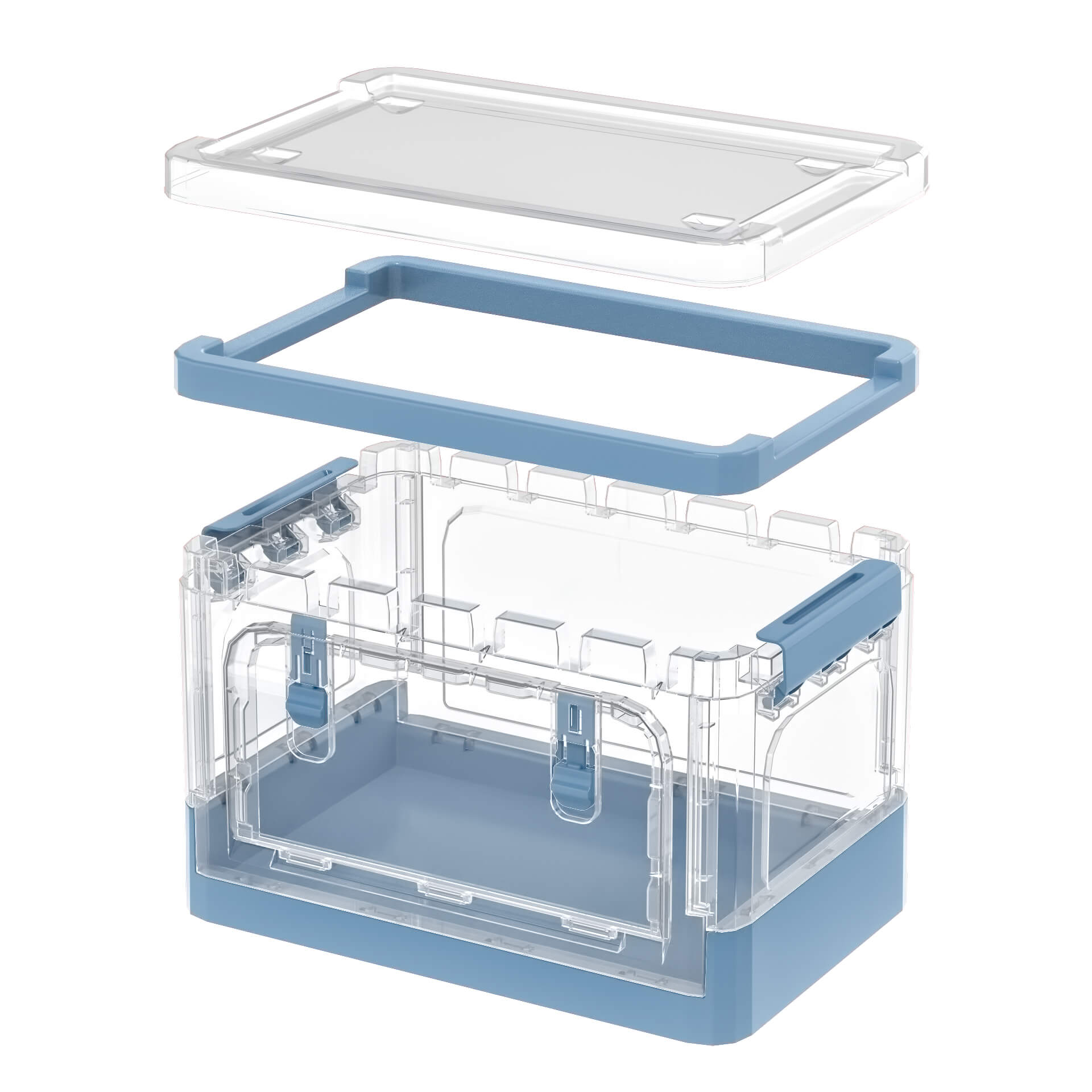 Этот пластиковый складной ящик – идеальный выбор для комфортного хранения. Прозрачные стенки позволяют легко видеть содержимое, а синее дно придает изделию стильный и аккуратный вид. Пластиковый контейнер отлично подходит для хранения одежды, игрушек, документов, бытовых принадлежностей и мелочей.
