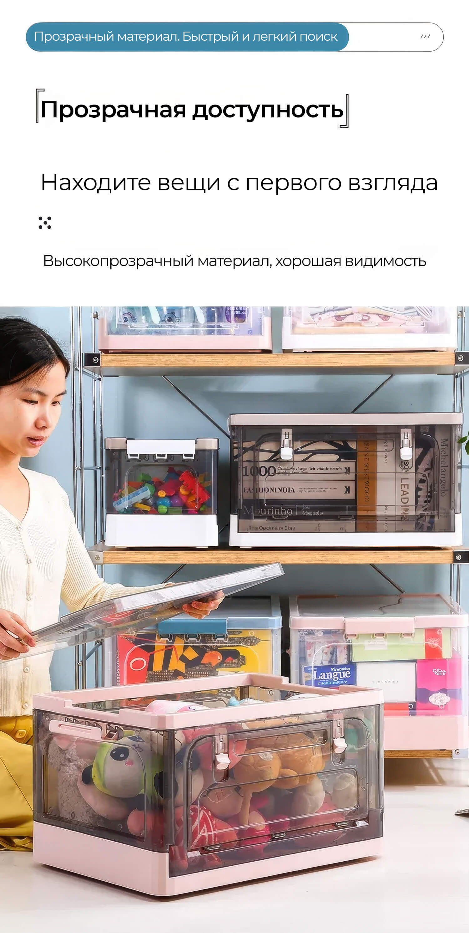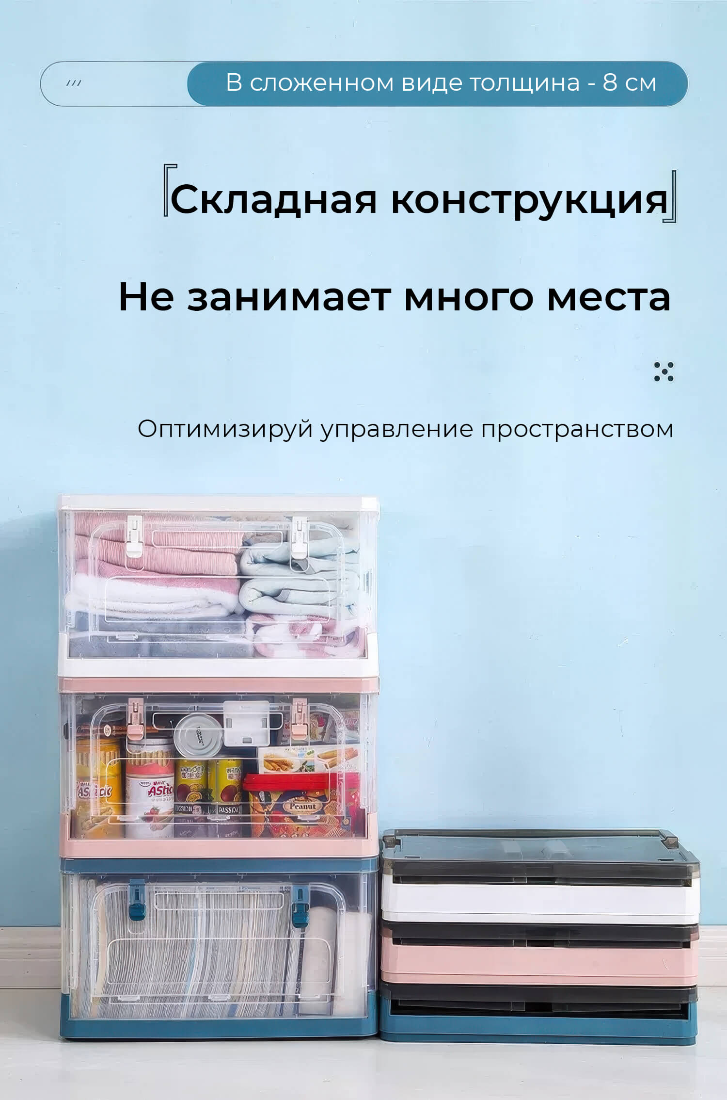 Пластиковая коробка с крышкой защищает вещи от пыли и влаги, обеспечивая чистоту и порядок. Прочная конструкция гарантирует долговечность, а складной механизм позволяет экономить место, когда контейнер не используется.