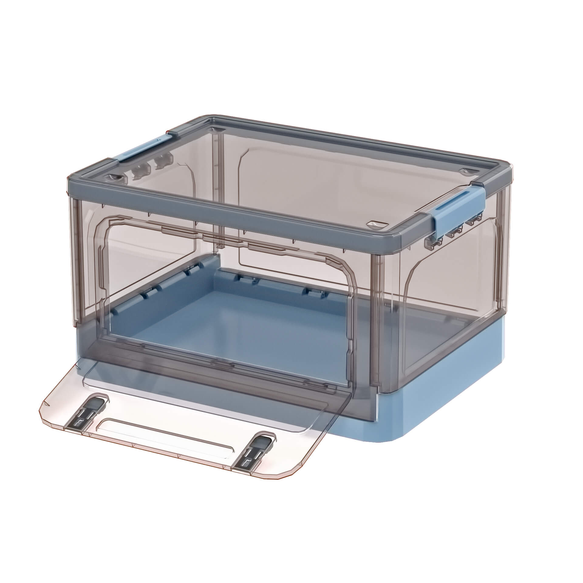 Практичный пластиковый складной ящик представляет собой идеальное сочетание дизайна и функциональности. Прозрачные стенки с коричневым оттенком позволяют легко увидеть содержимое, а глубокое синее дно придает изделию стильный и современный вид. Пластиковый контейнер идеально подходит для хранения одежды, игрушек, бытовых принадлежностей, документов и других мелочей.