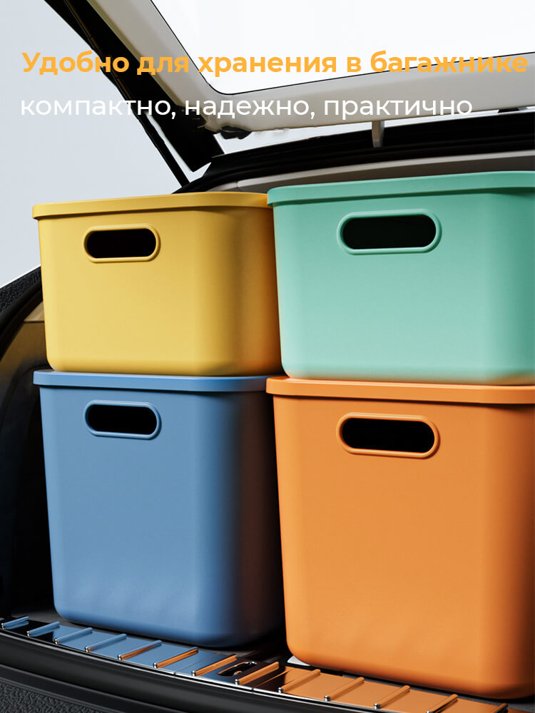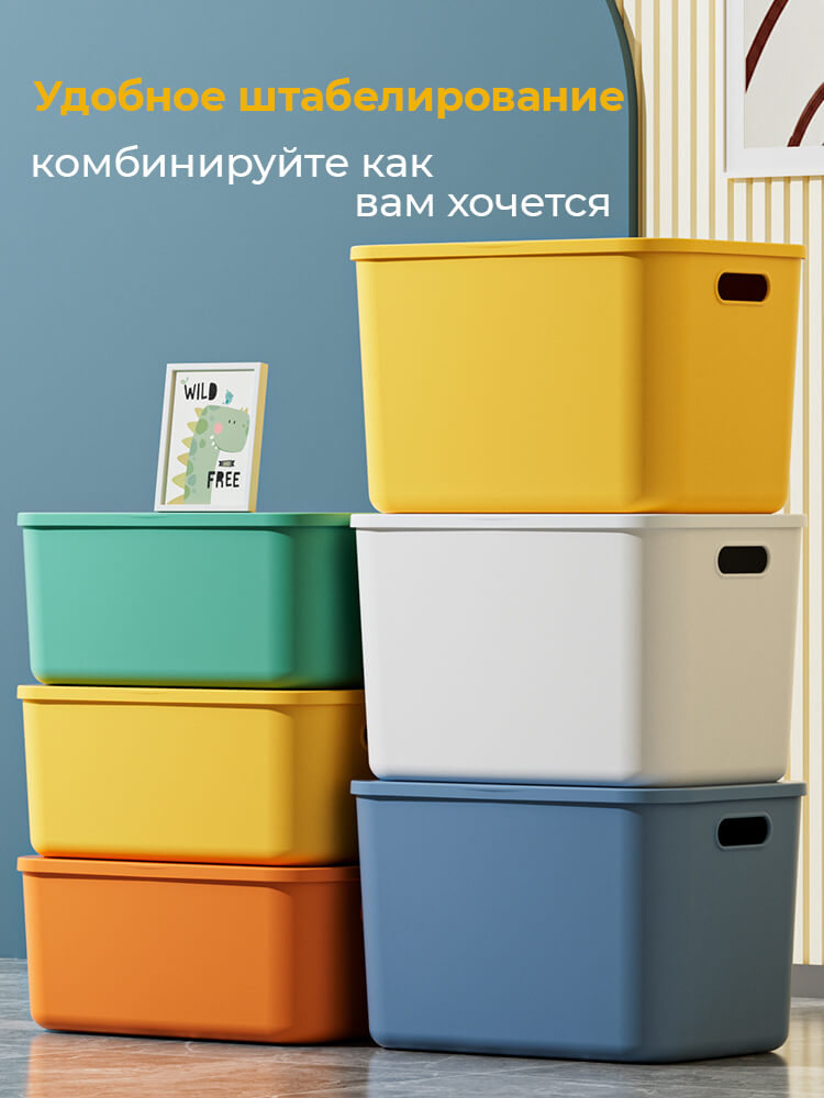 Пластиковый контейнер можно вкладывать один в другой без крышки для компактного хранения. Он отлично подходит для хранения одежды, игрушек, документов, бытовых принадлежностей и других вещей, обеспечивая порядок в доме, офисе или на складе.