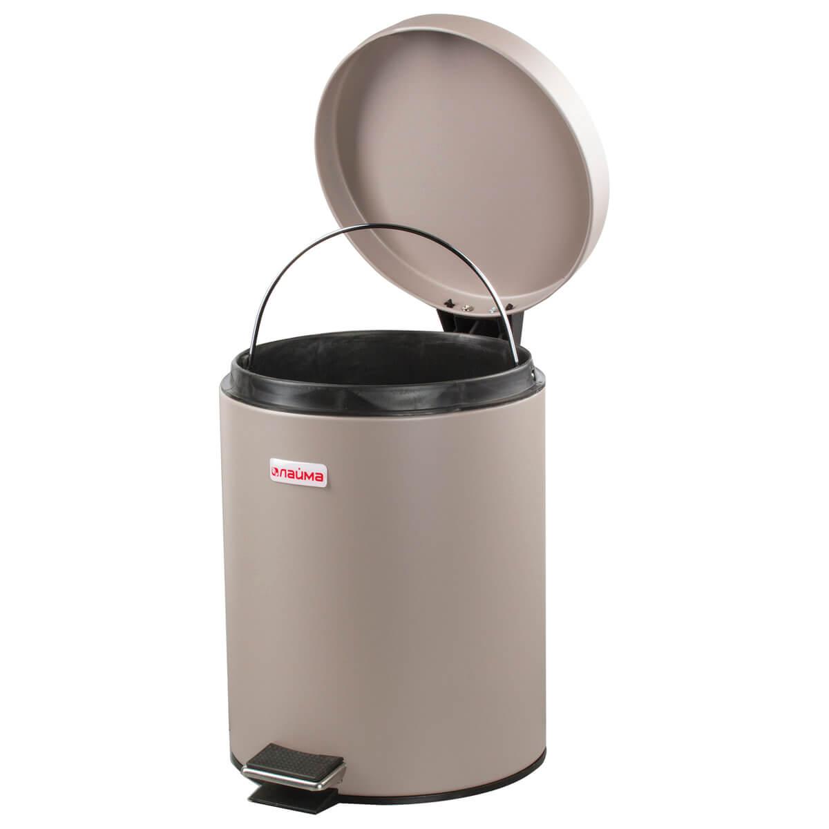 Ведро-контейнер для мусора (урна) с педалью LAIMA Classic, 5 л, серое, матовое, металл, со съемным внутренним ведром
