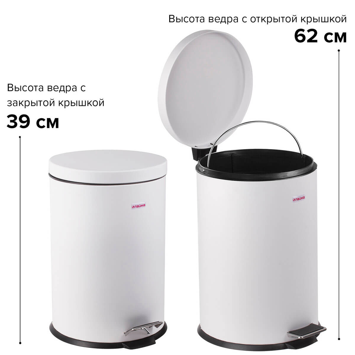 Ведро-контейнер для мусора (урна) с педалью LAIMA Classic, 12 л, белое, глянцевое, металл, со съемным внутренним ведром