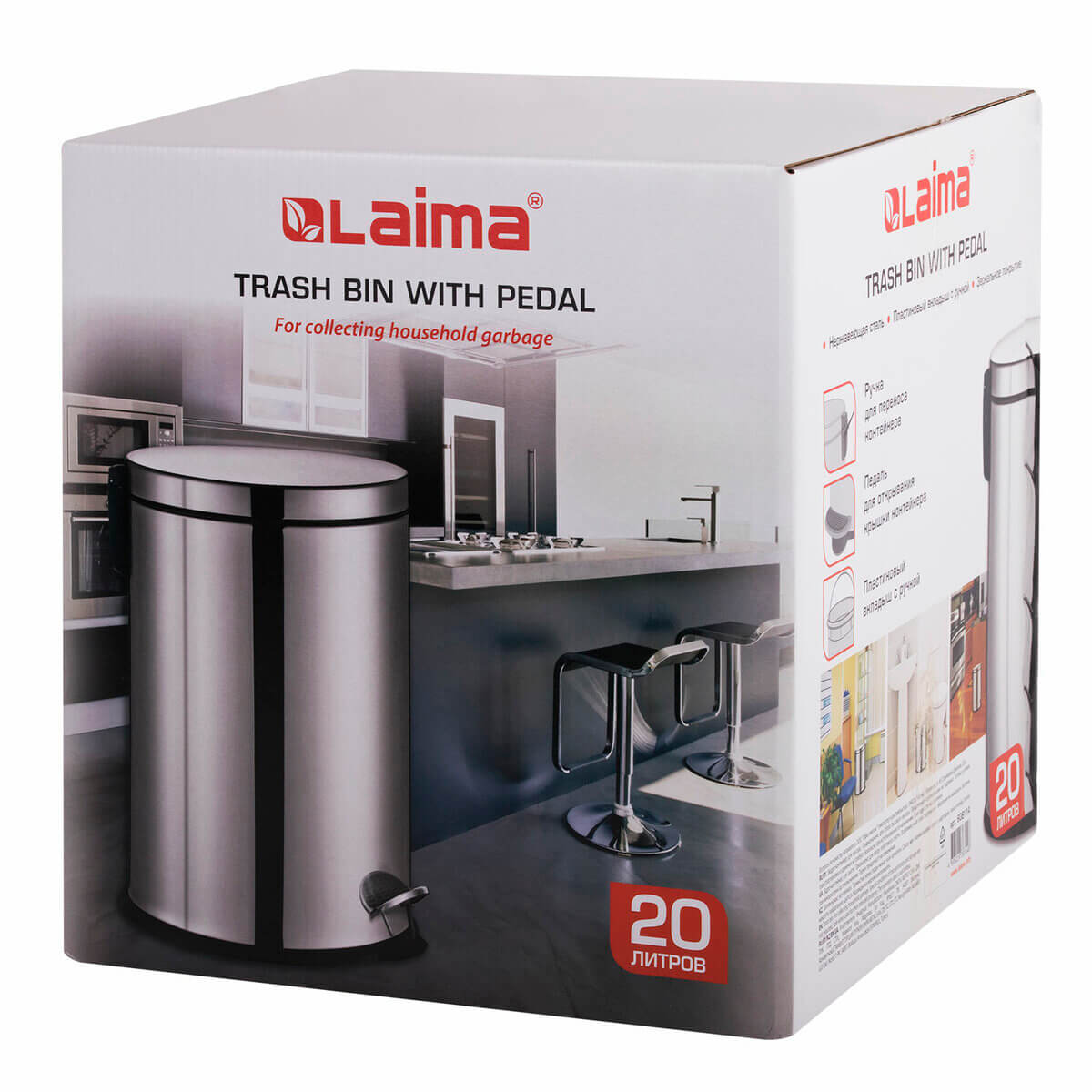 Ведро-контейнер для мусора урна с педалью LAIMA Classic Plus, 20 л, зеркальное